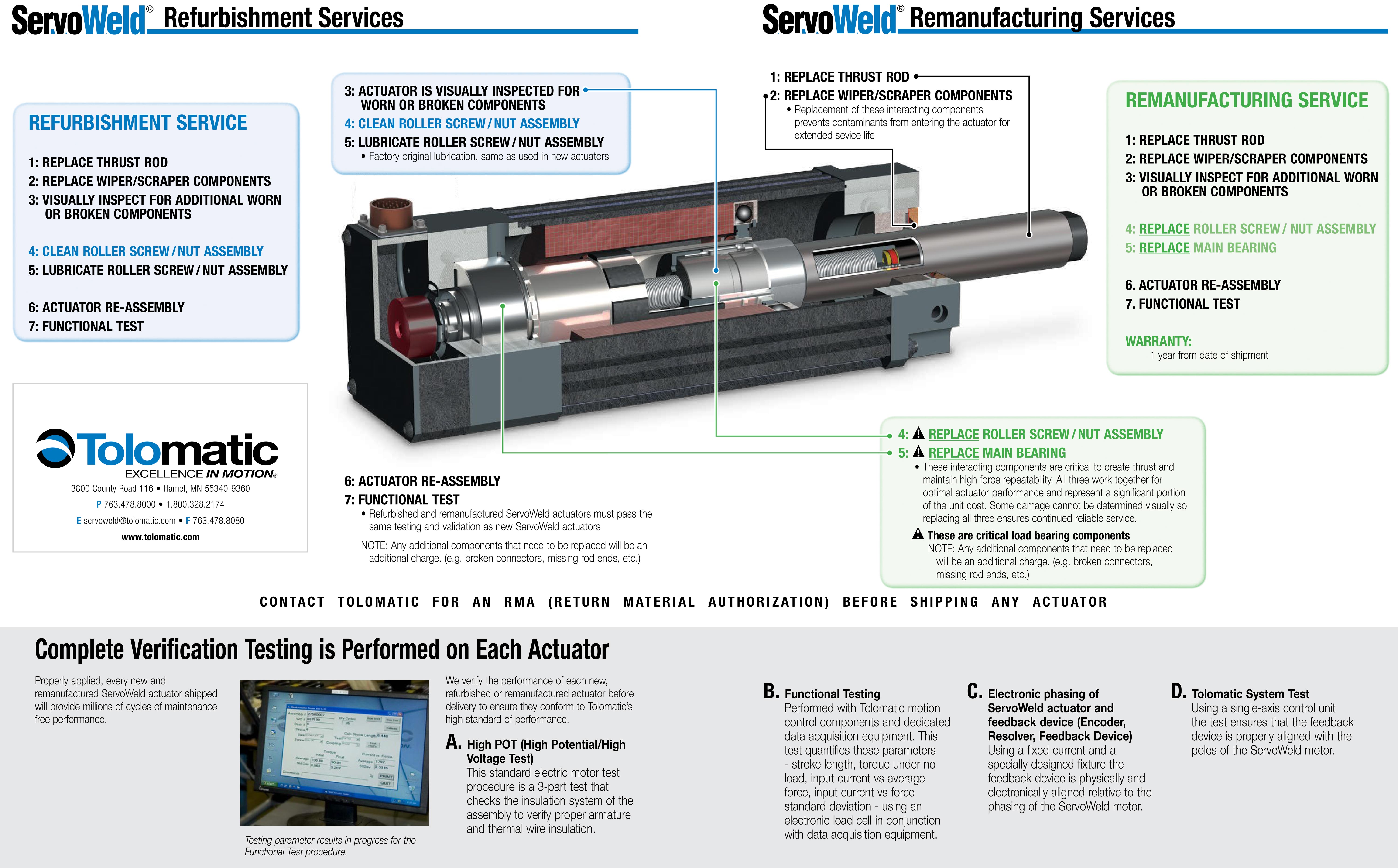 Tolomatic bietet jetzt einen Aufarbeitungsservice für ServoWeld®-Widerstandspunktschweißantriebe an.