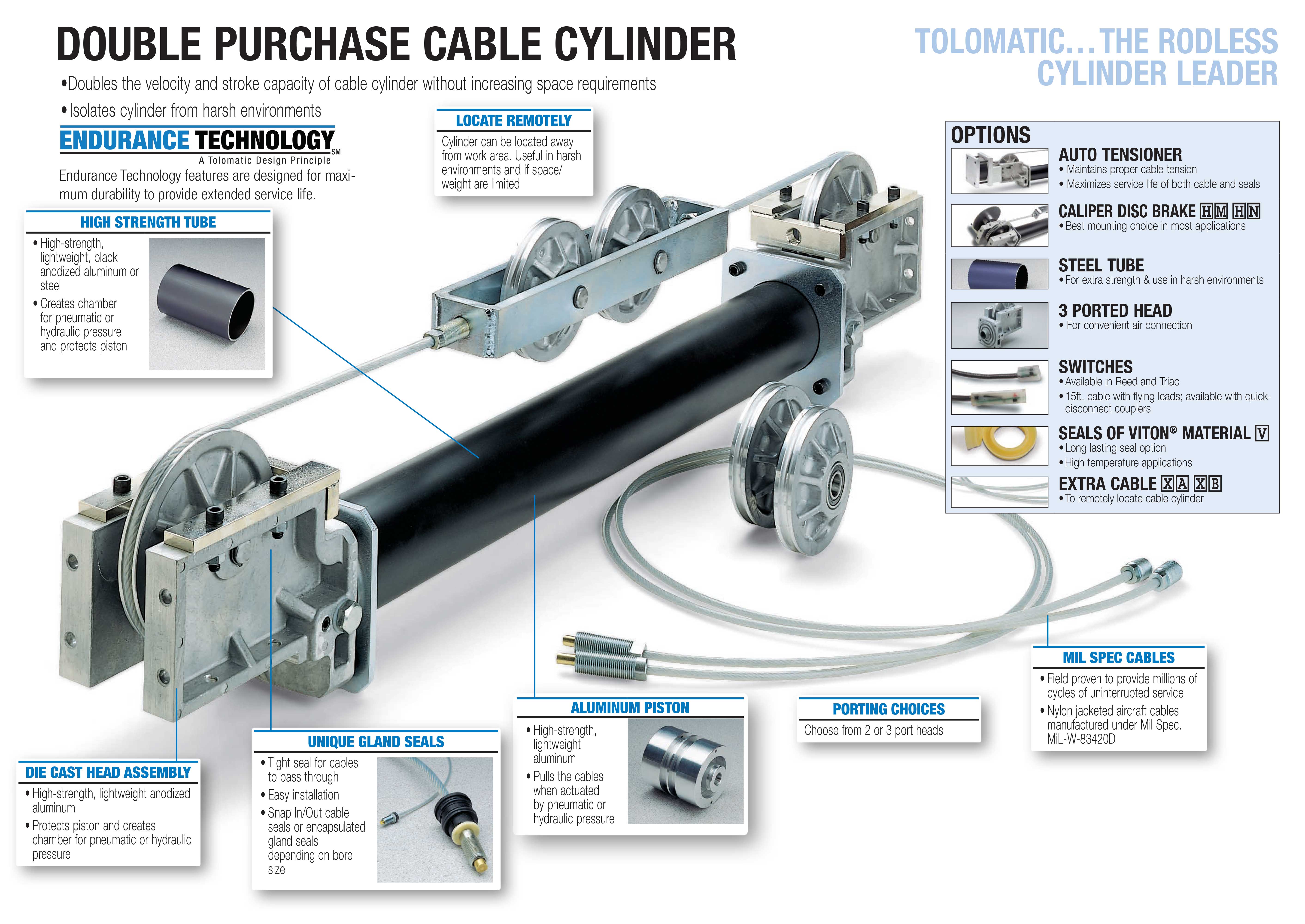 Der Doppelzugantrieb von Tolomatic kann den Hub und die Geschwindigkeit eines doppeltwirkenden Kabelzylinders verdoppeln, was erhebliche Kostenvorteile mit sich bringt. Doppelzugantriebe können auch dann betrieben werden, wenn sie außerhalb von aggressiven Umgebungen aufgestellt werden, in denen Bewegung erforderlich ist.