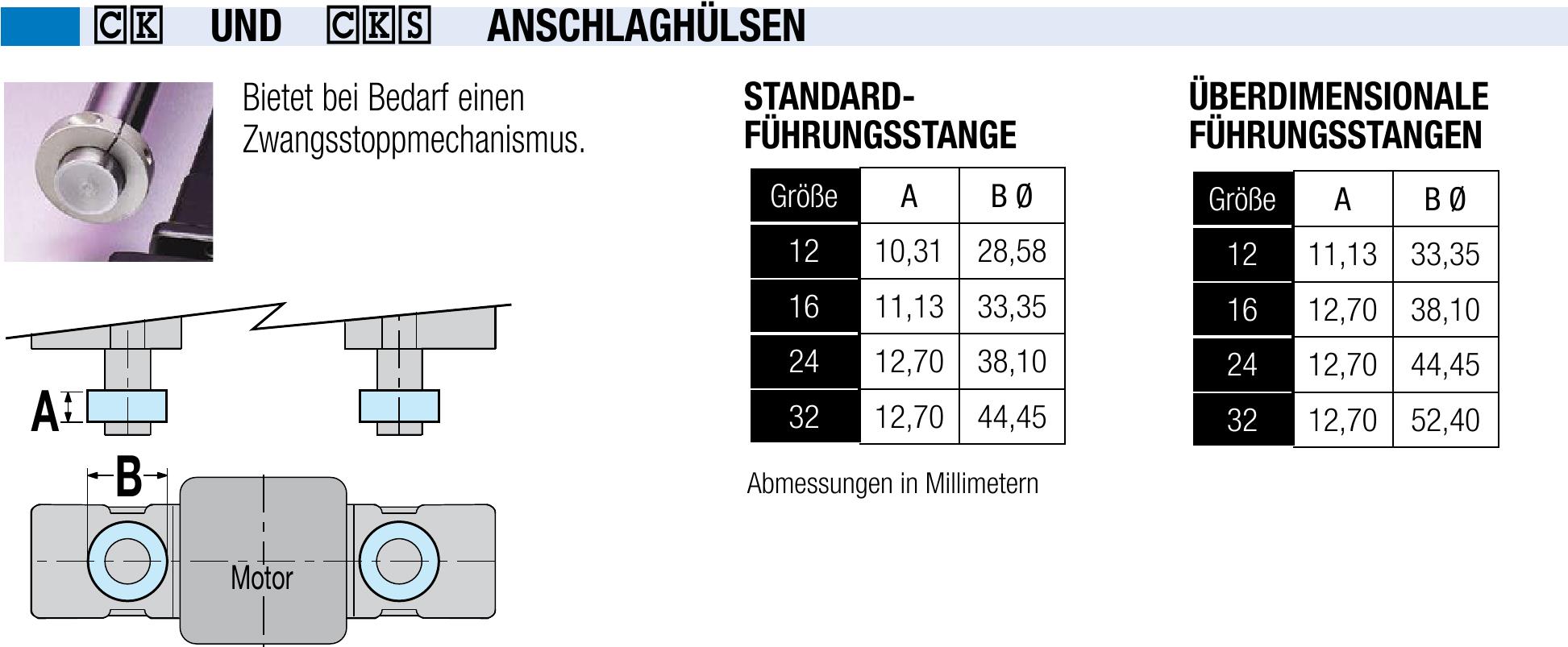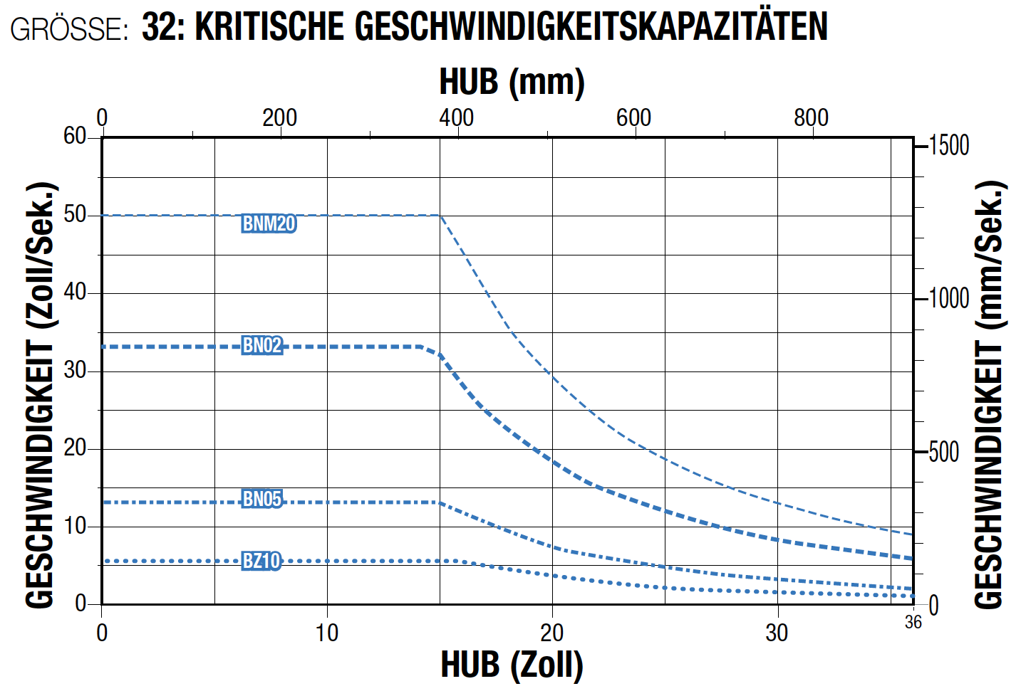 • Hublängen in beliebigen Schritten bis 914 mm (36 Zoll) je nach Baugröße