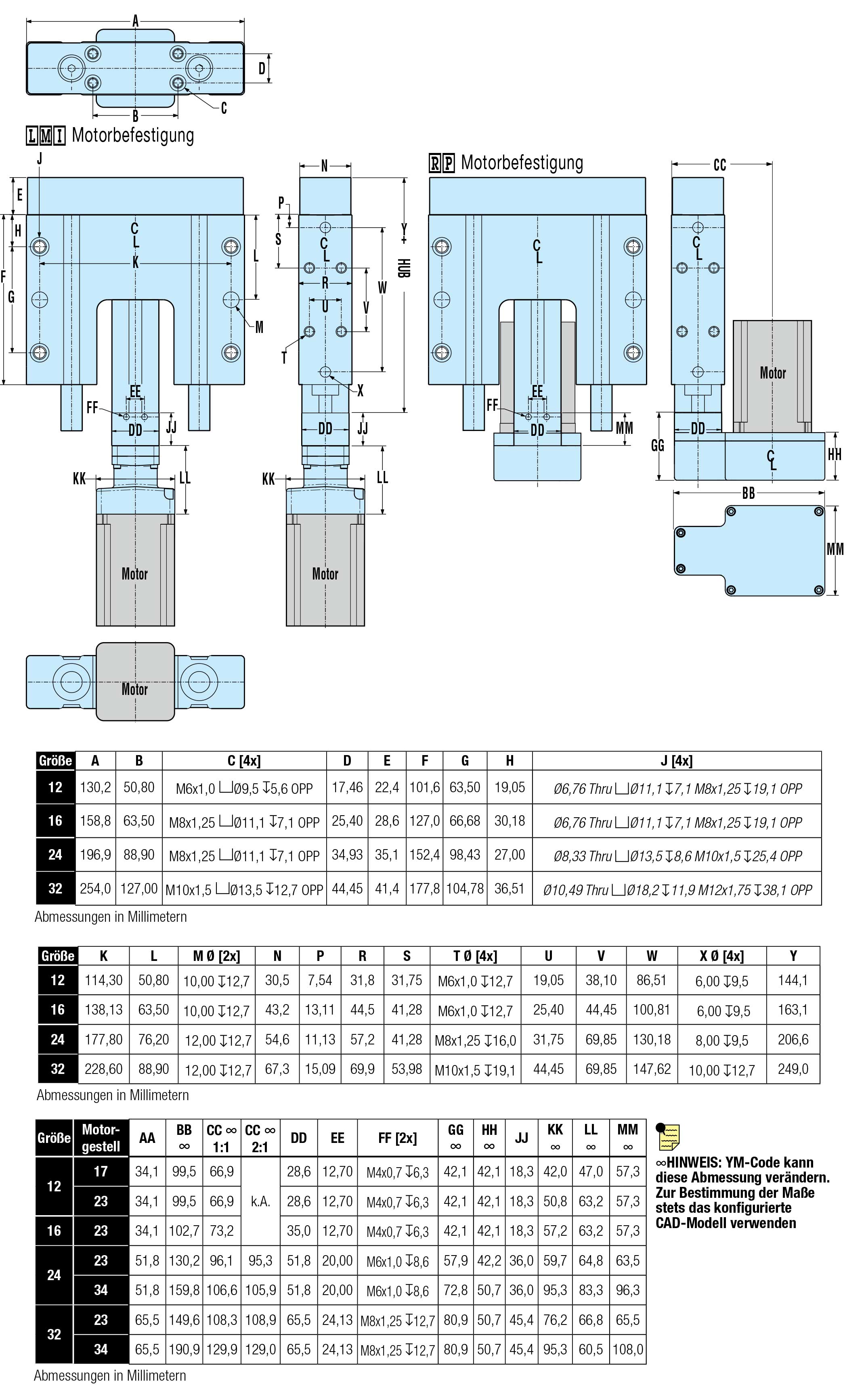 • Normaler oder übergroßer Führungsstangendurchmesser für erhöhte Steifigkeit und geringere Durchbiegung