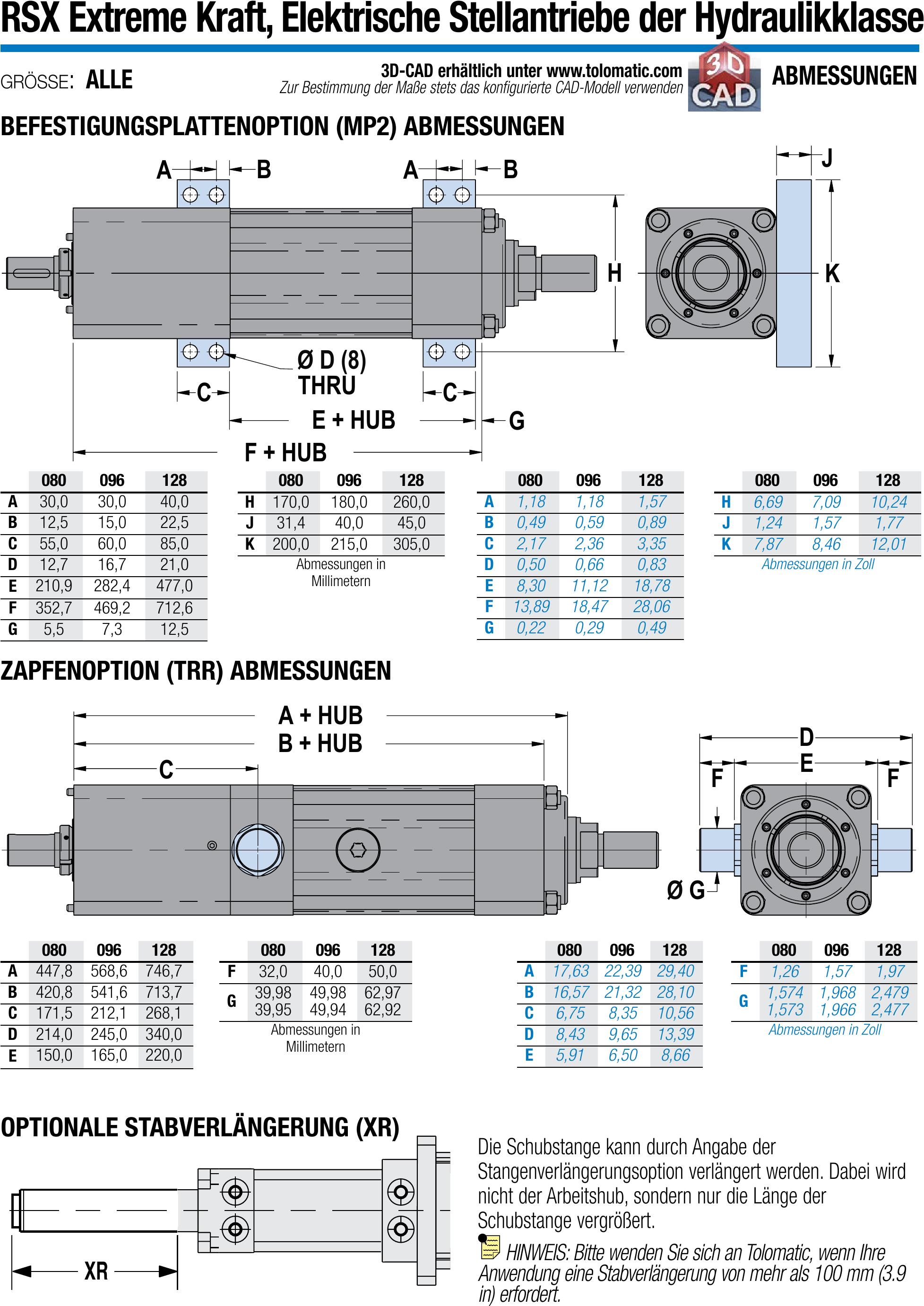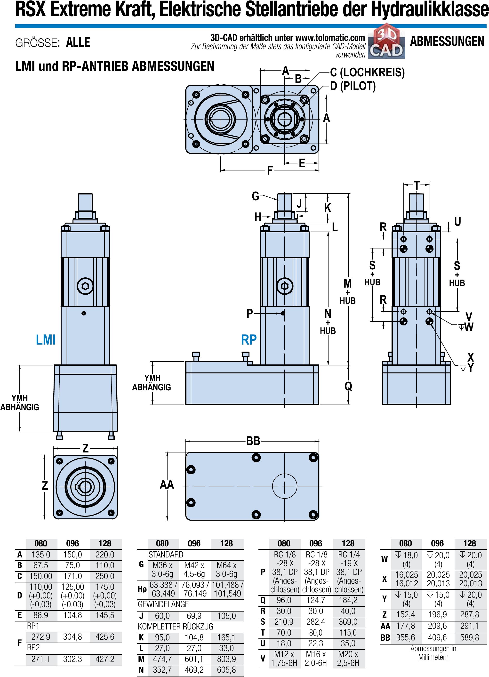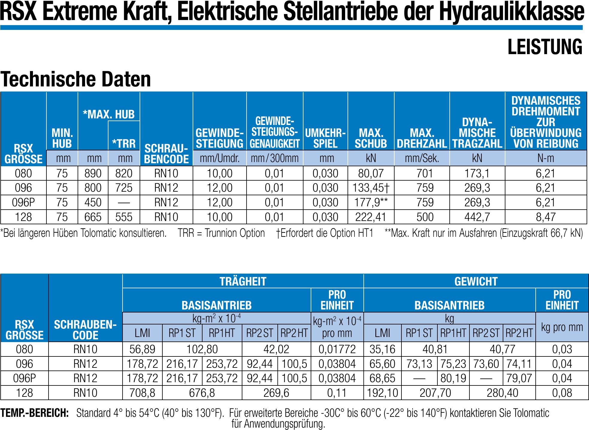 Elektrische RSX-Linearantriebe mit extremer Kraft bieten die folgenden Merkmale: