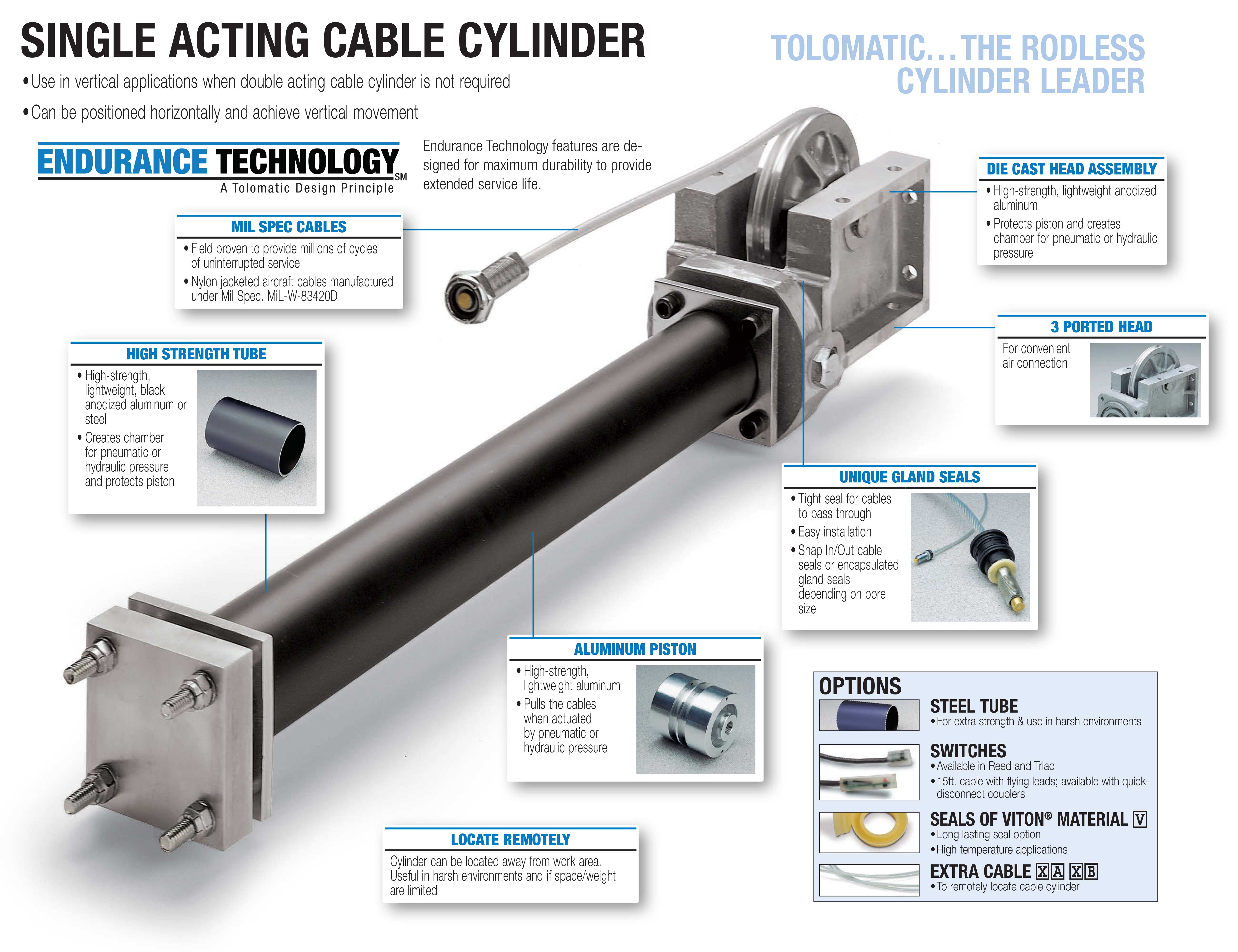 Der einfachwirkende pneumatische Druckluftzylinder von Tolomatic stellen eine kostengünstige Alternative zu doppeltwirkenden Zylindern dar.