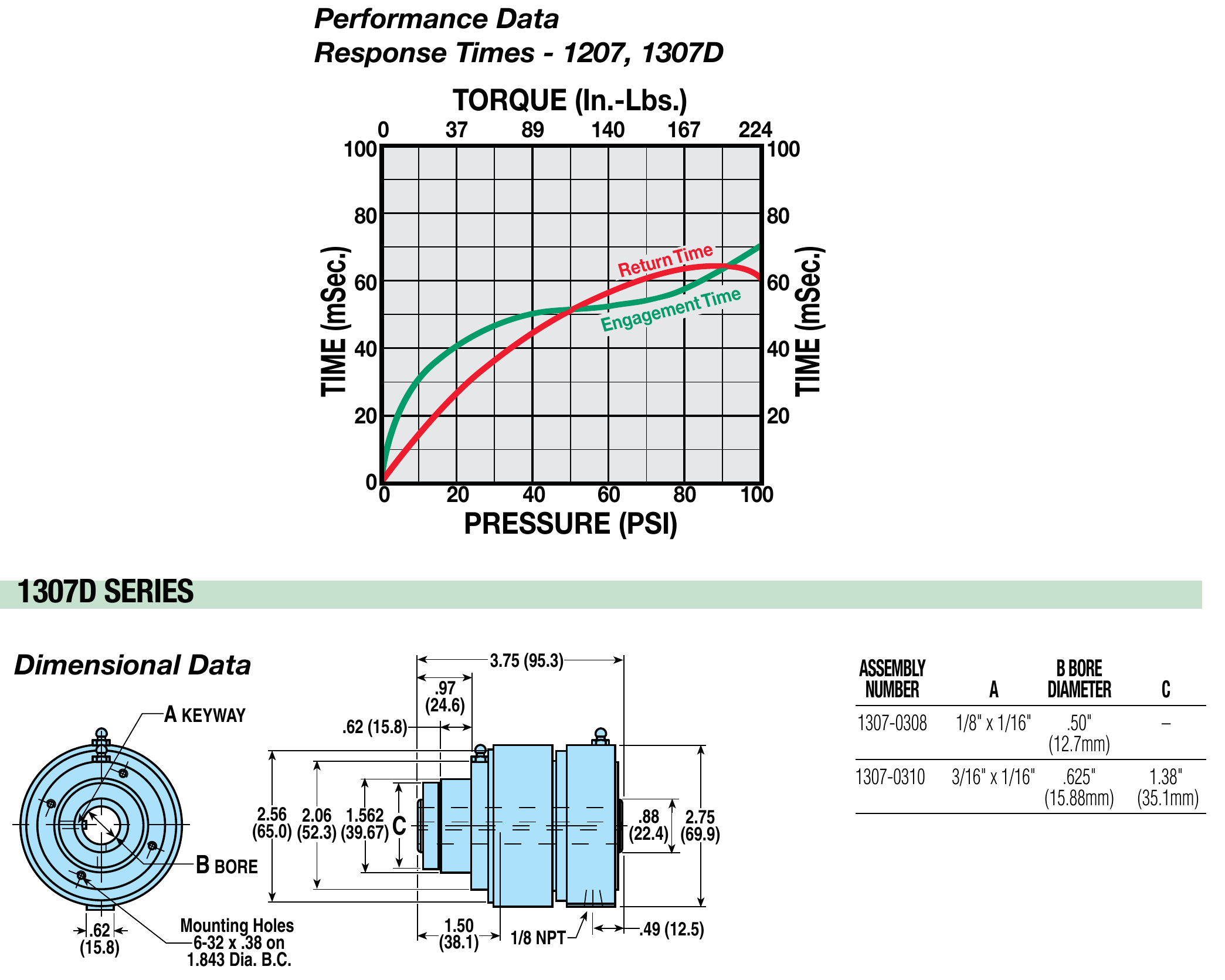 • 1/2- and 5/8-inch bore sizes (12.7 and 15.9 mm)