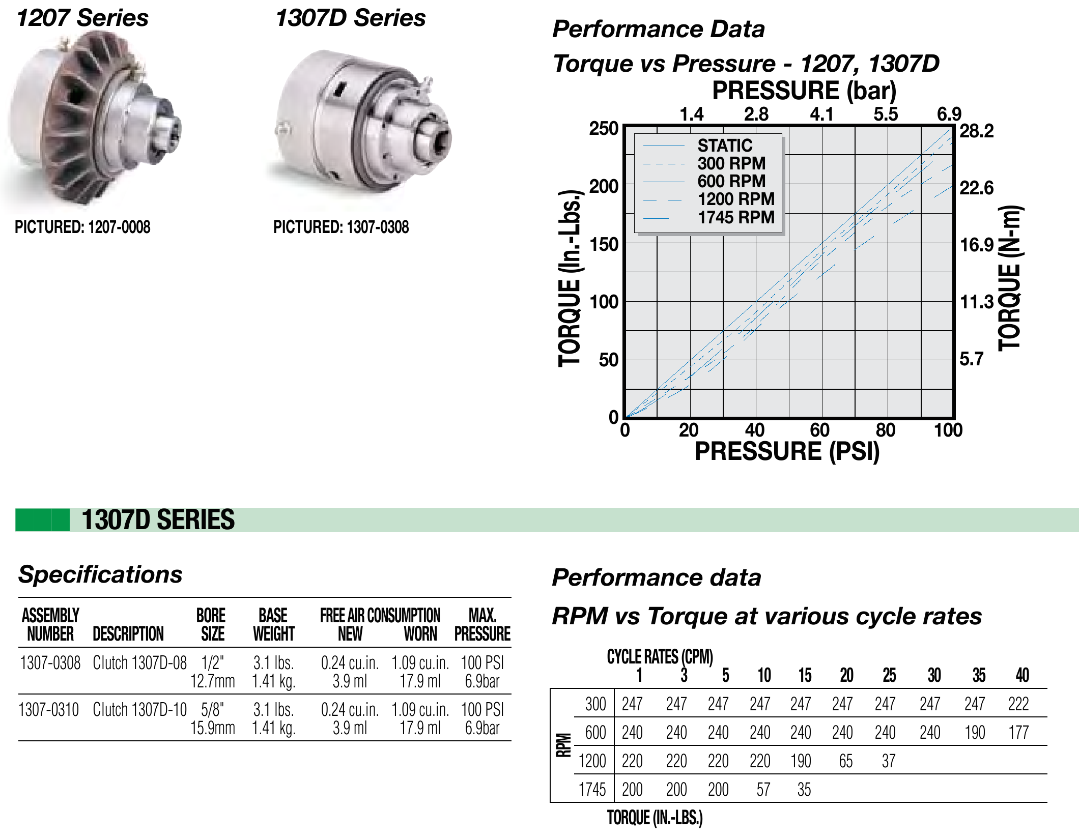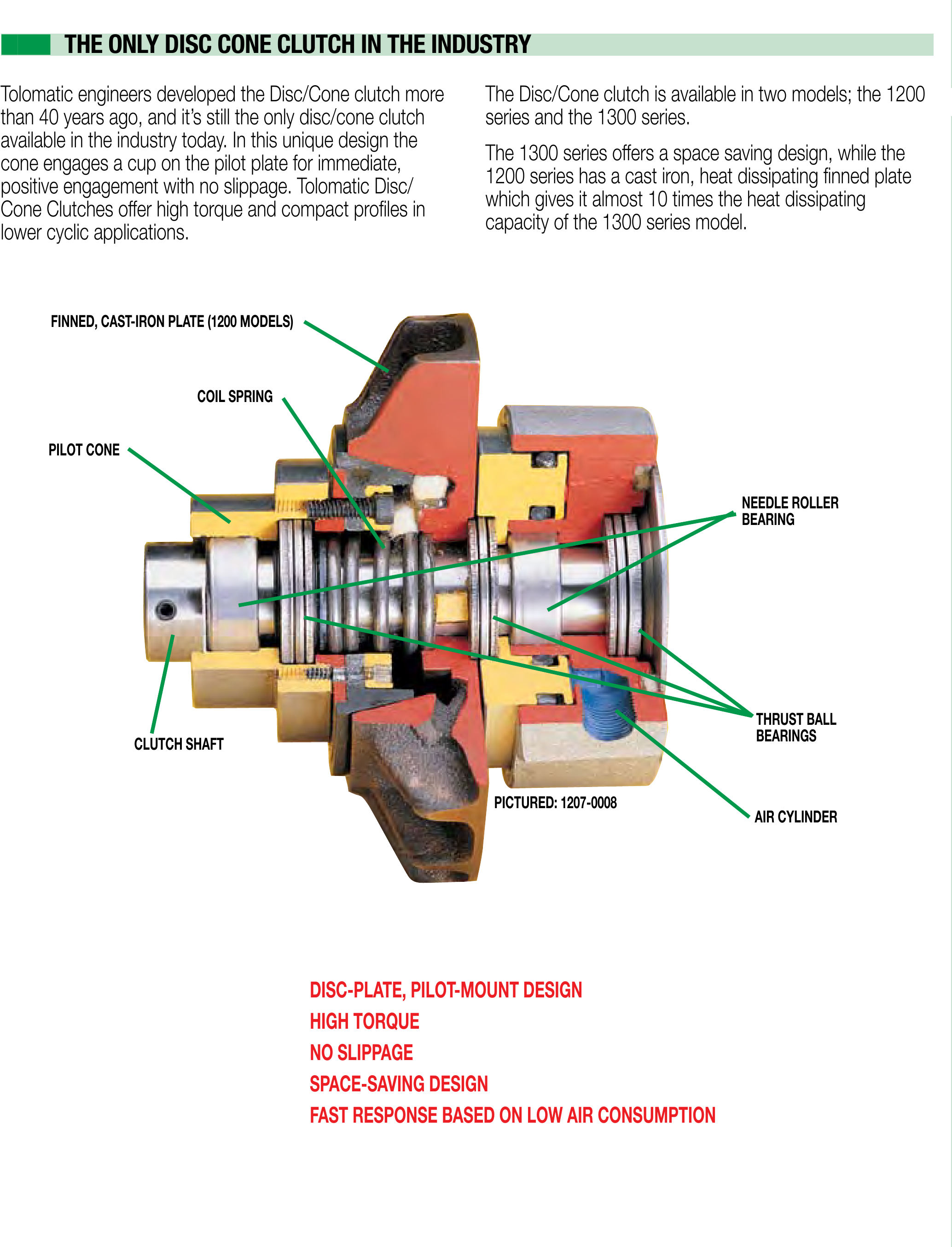 The 1307D series pneumatic cone clutch has a space-saving design that offers high torque in lower cyclic applications.