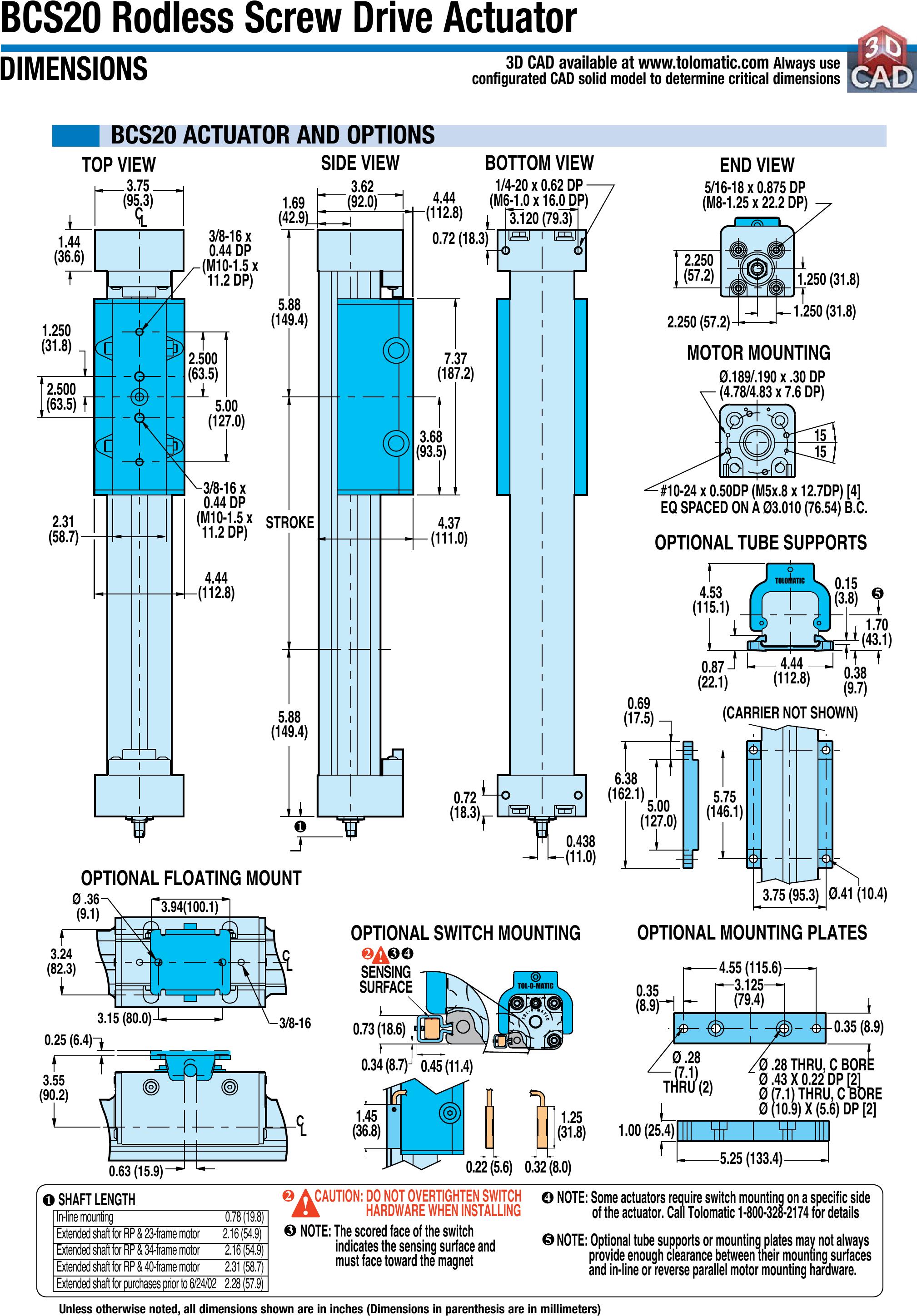 BCS rodless screw actuators are designed for carrying light to moderate loads at a low price.