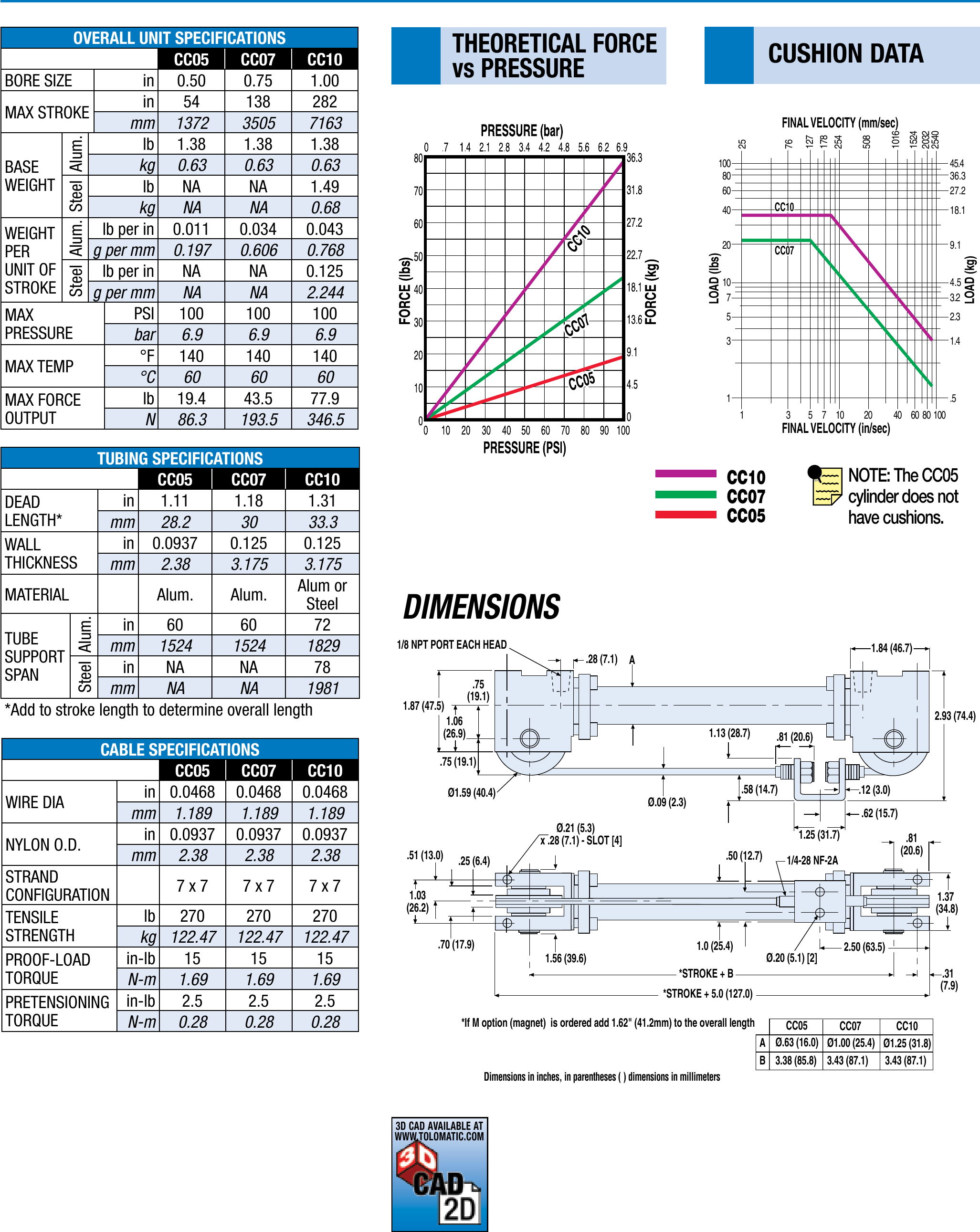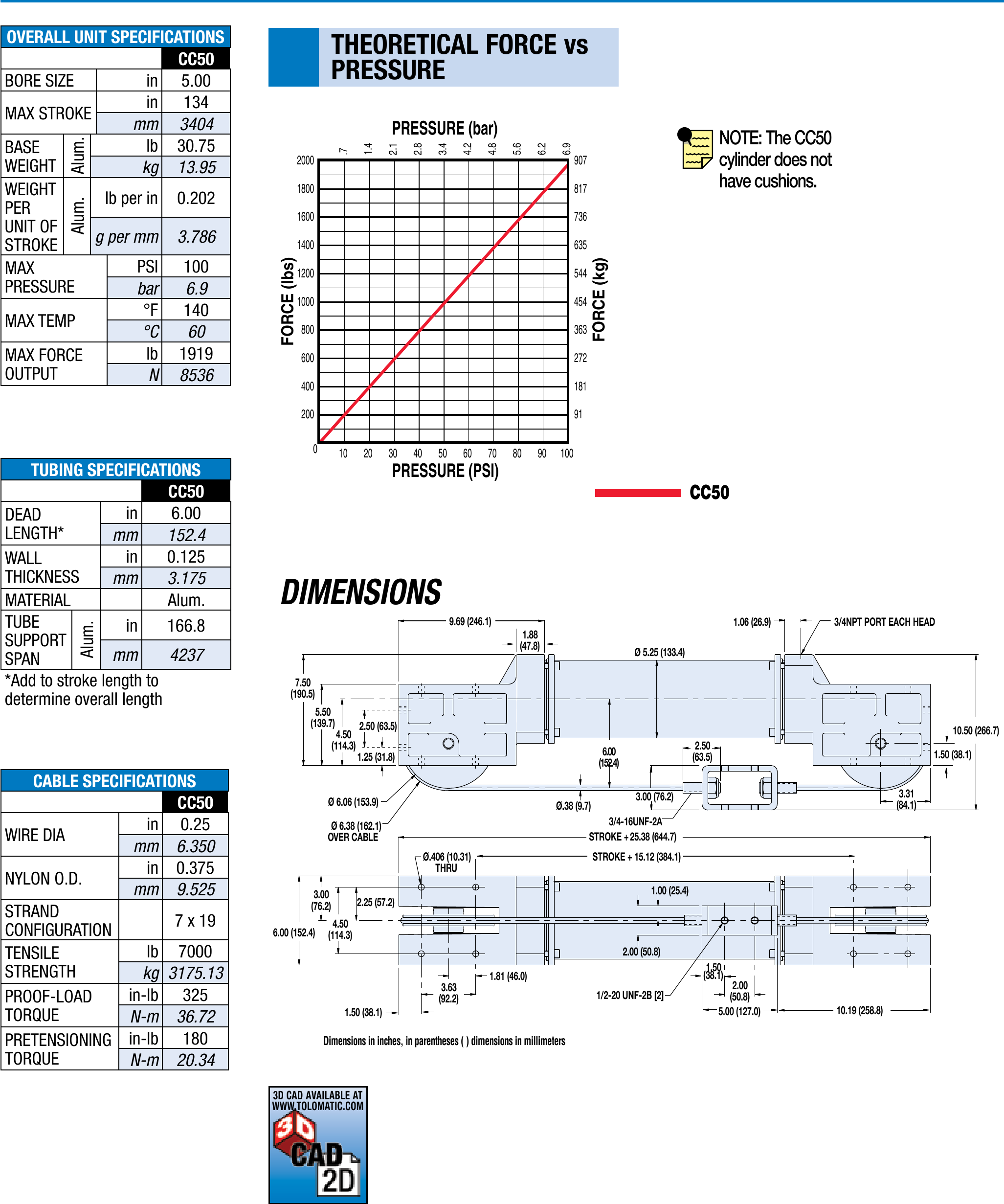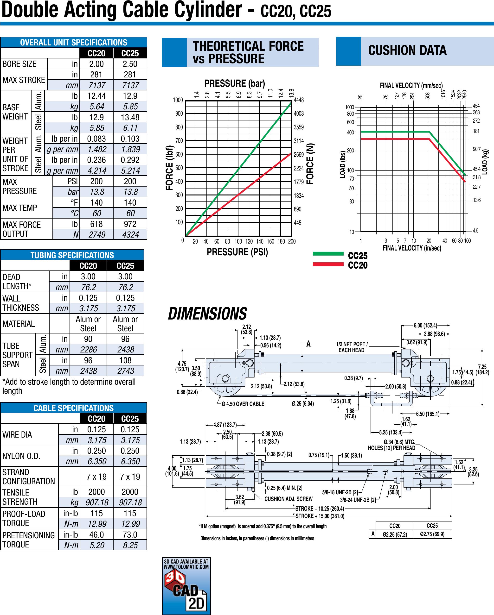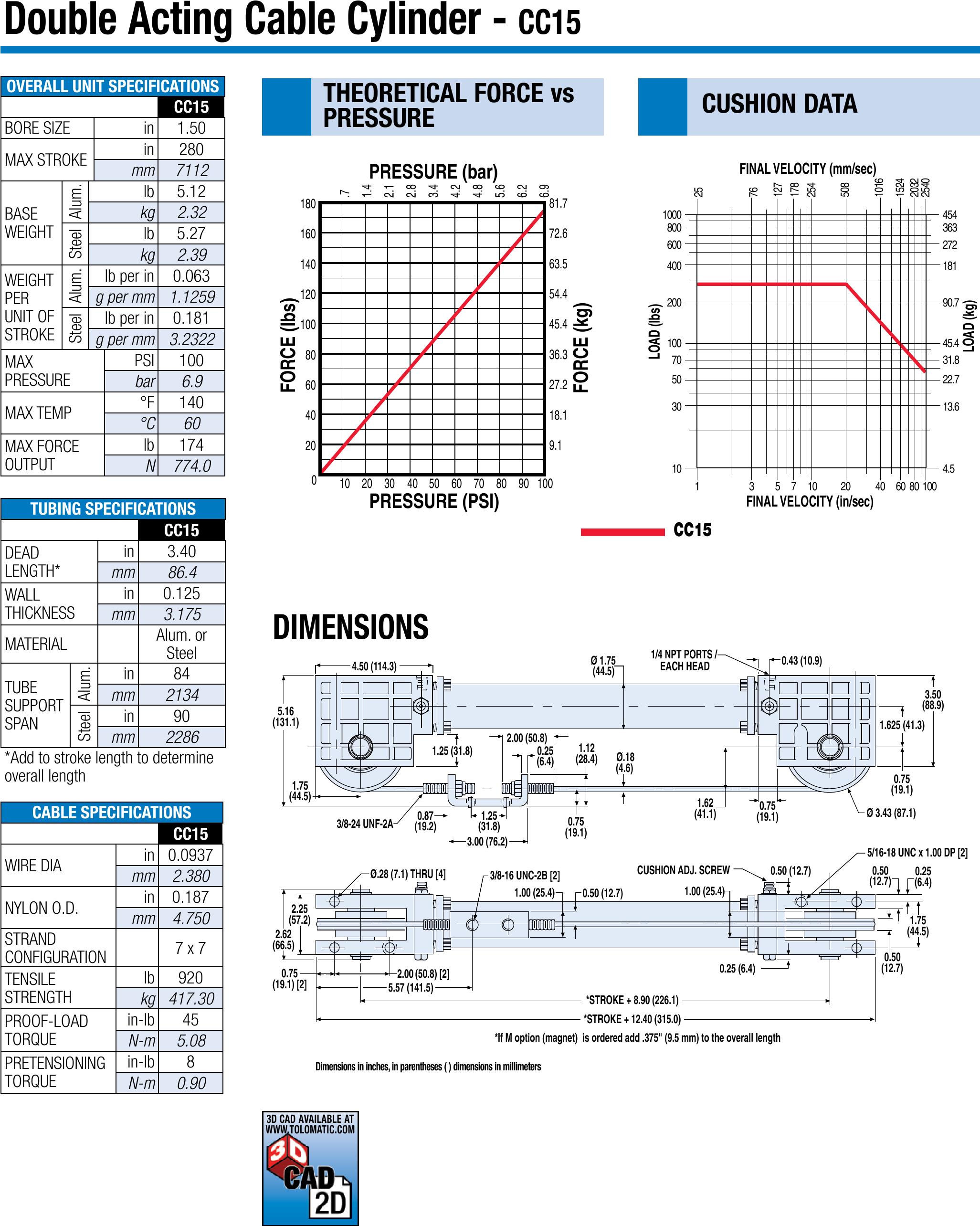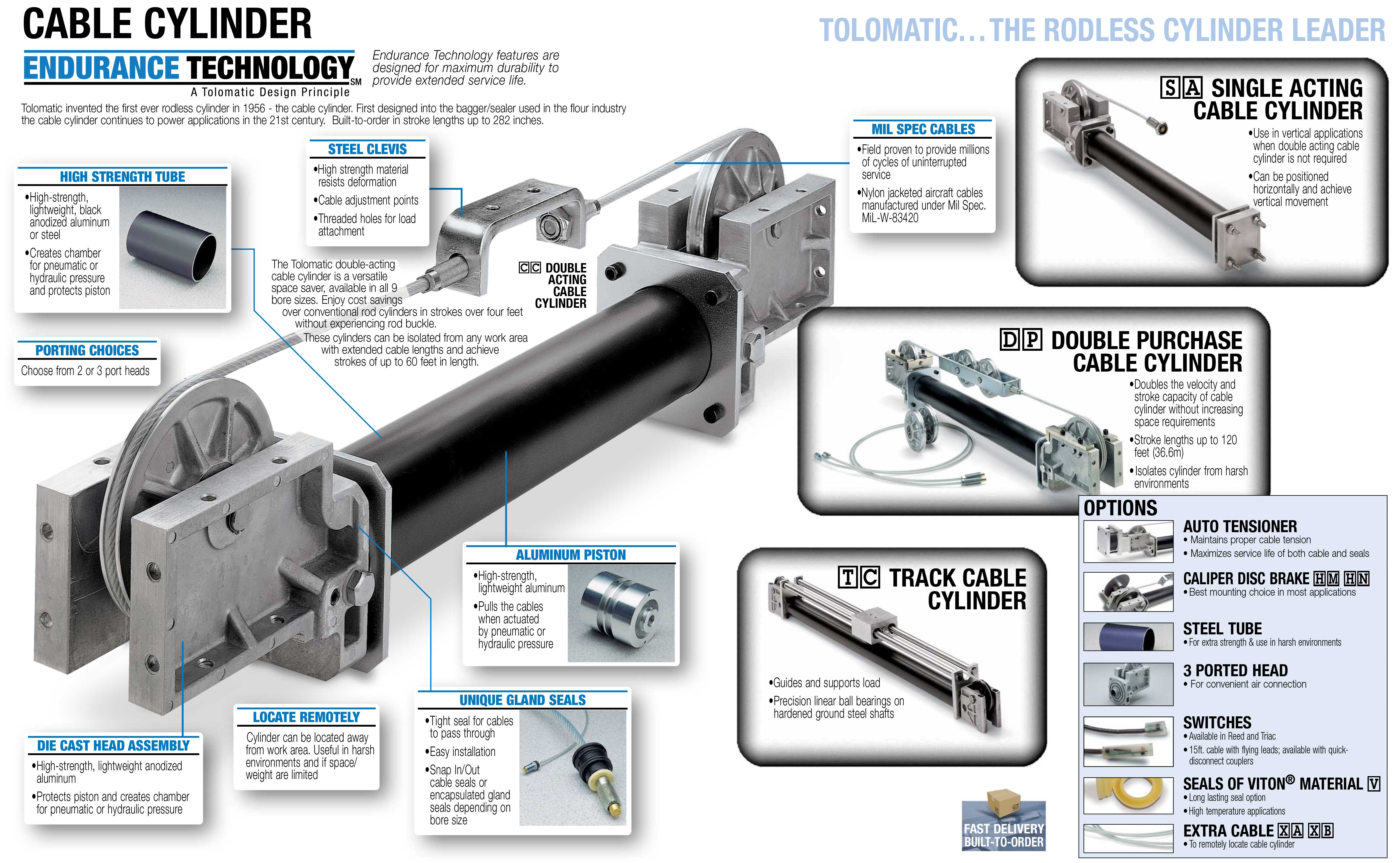 Double acting pneumatic air cylinders offer a cost savings over rod cylinders when strokes exceed four feet and provide a versatile space-saving design.