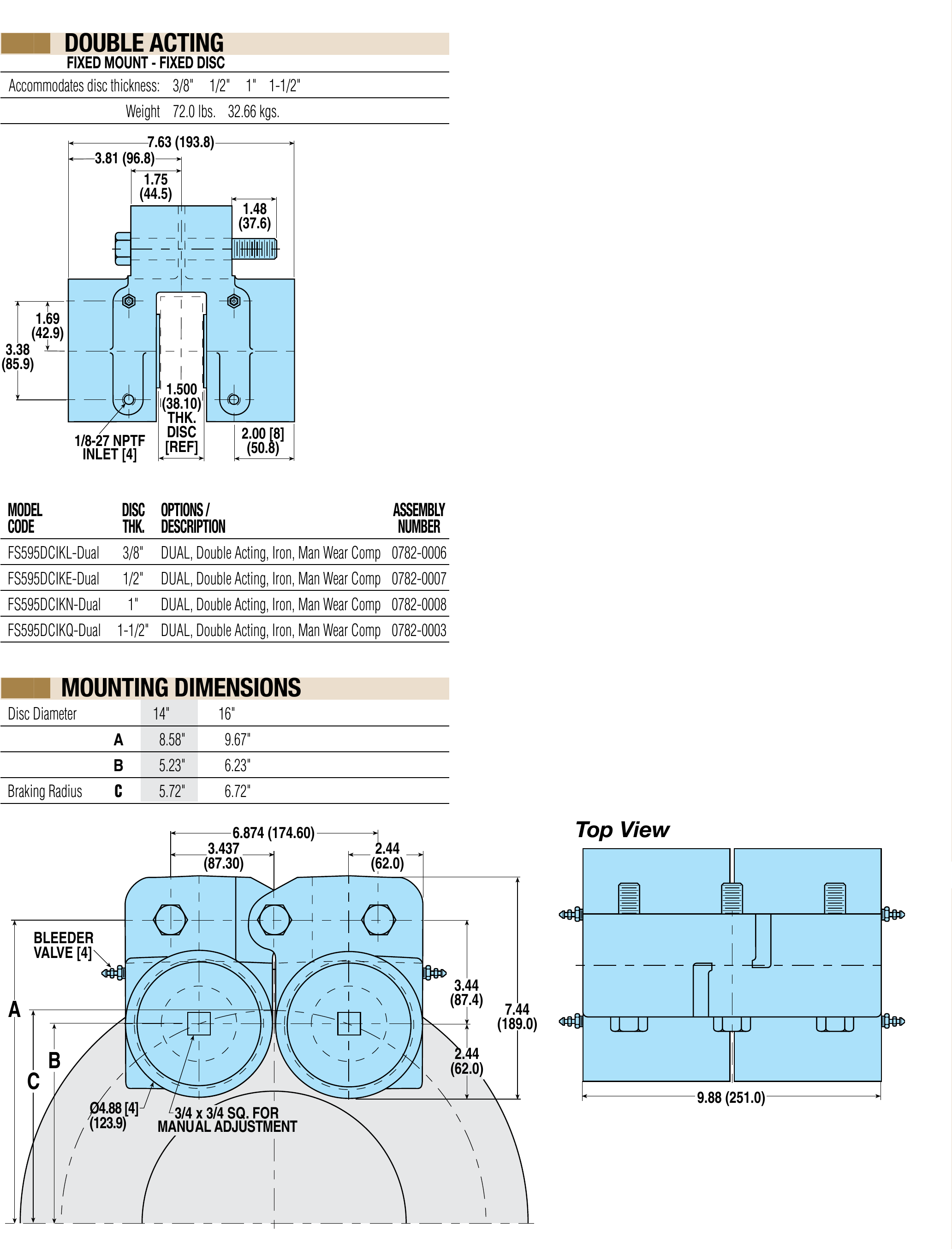 DUAL, Double Acting, Iron, Manual Wear Compensator |