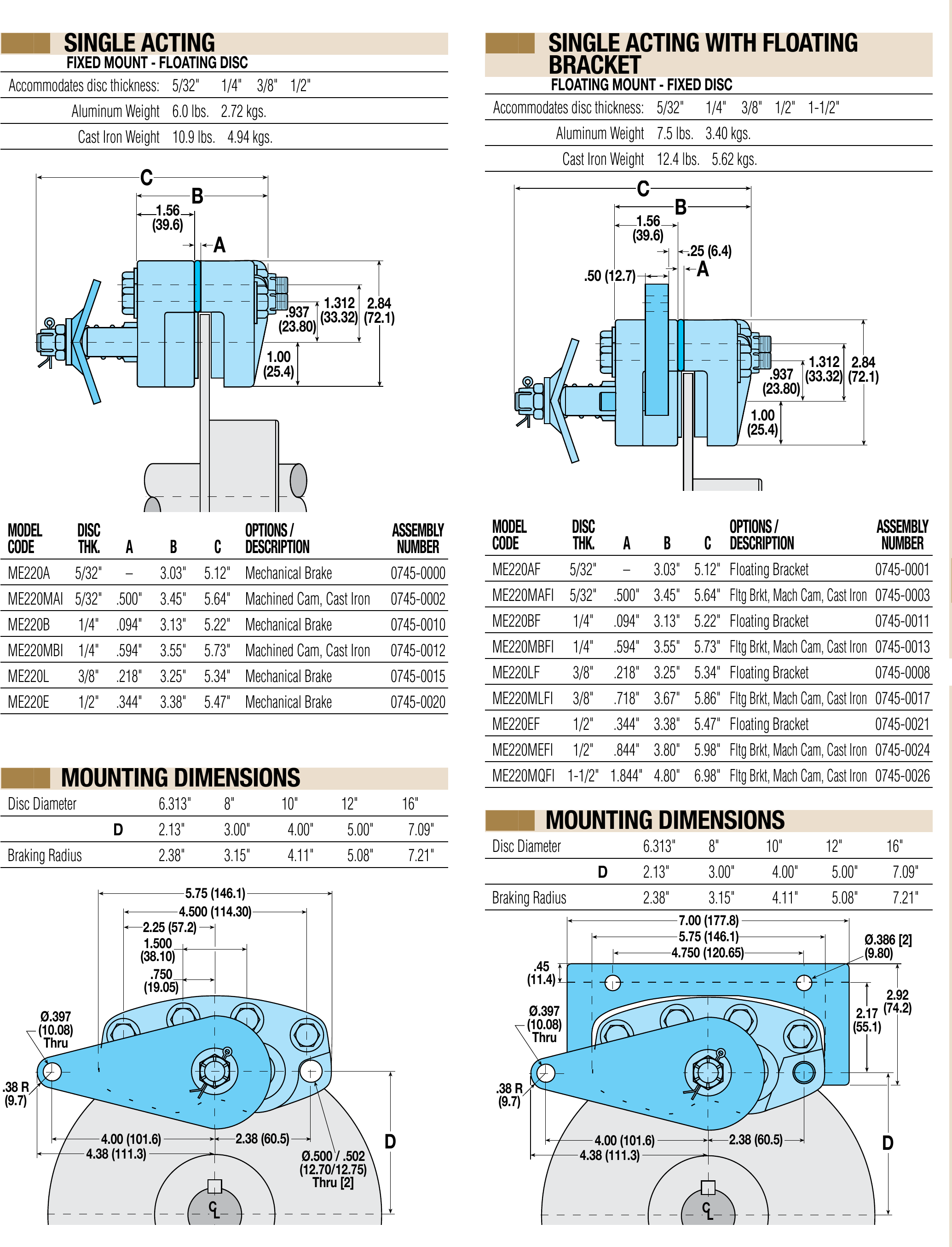 ME220MBI | 1/4 | 0.594 | 3.55 | 5.73 |