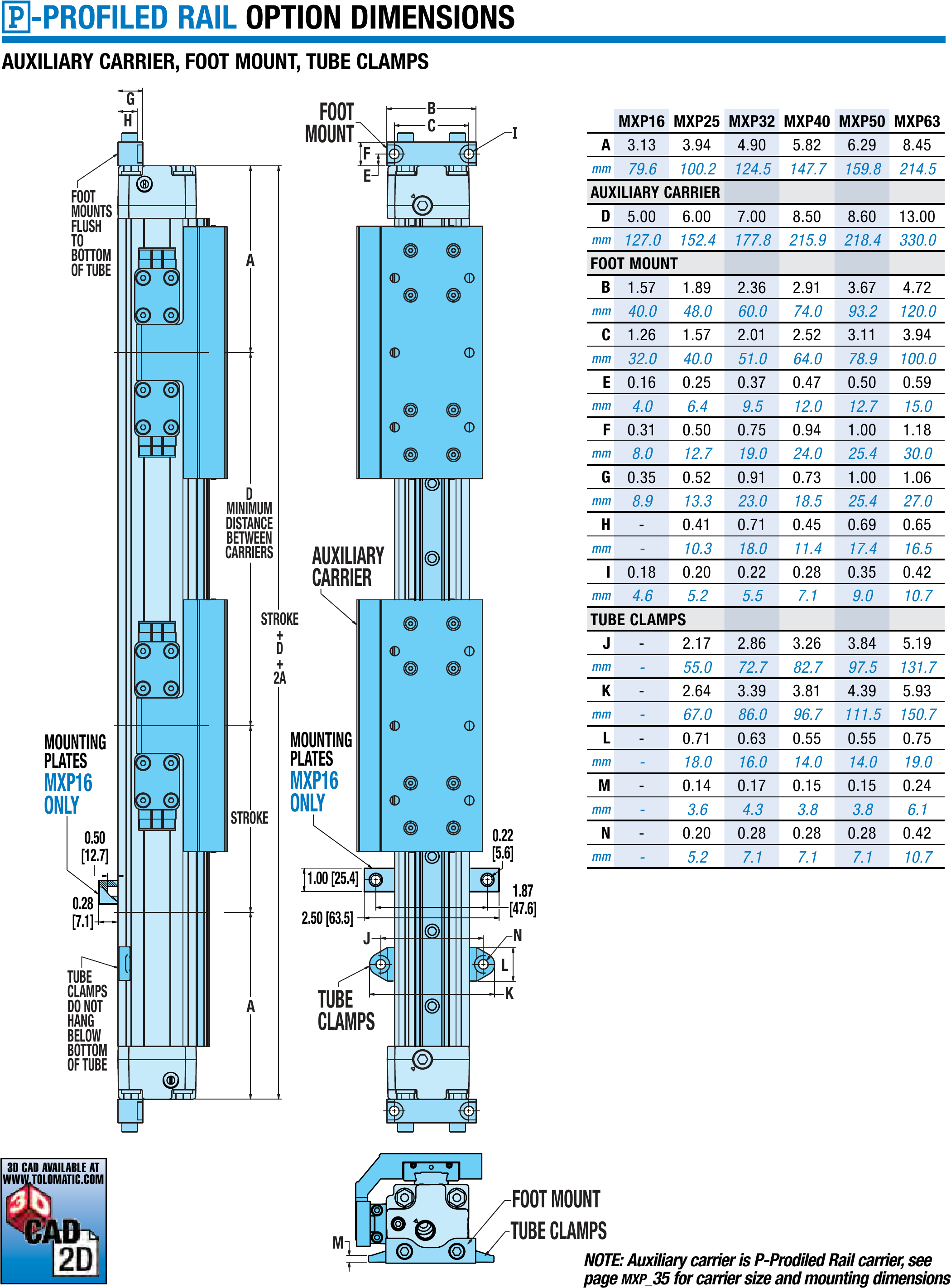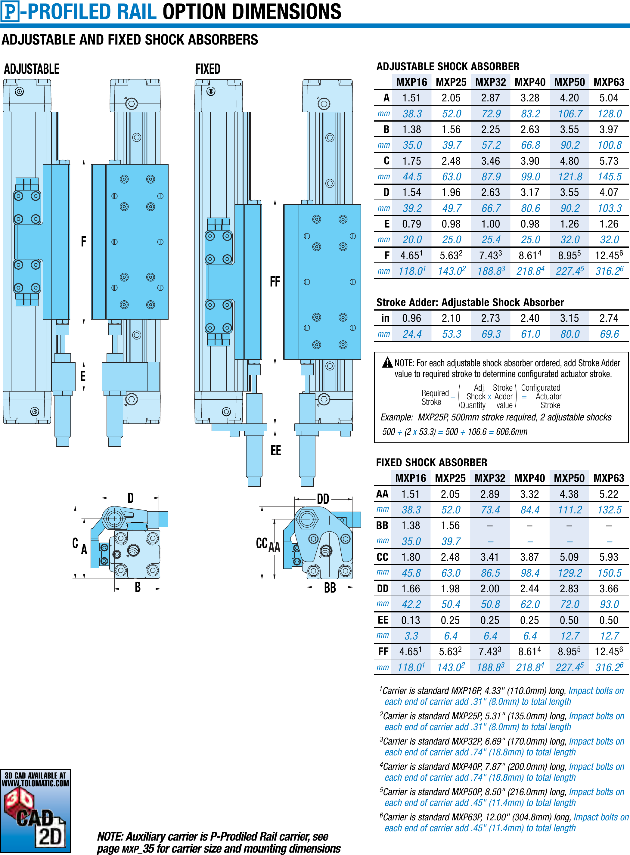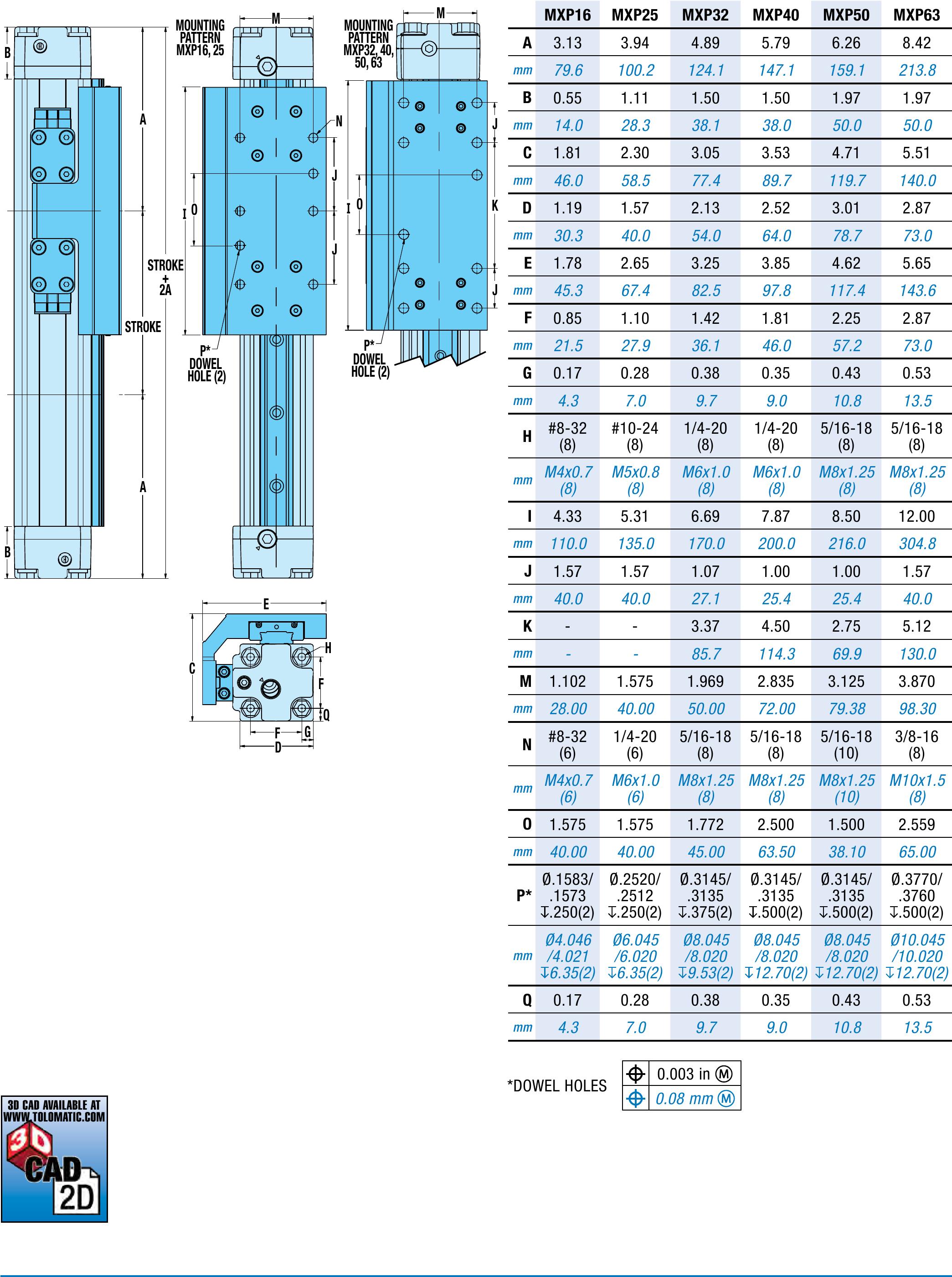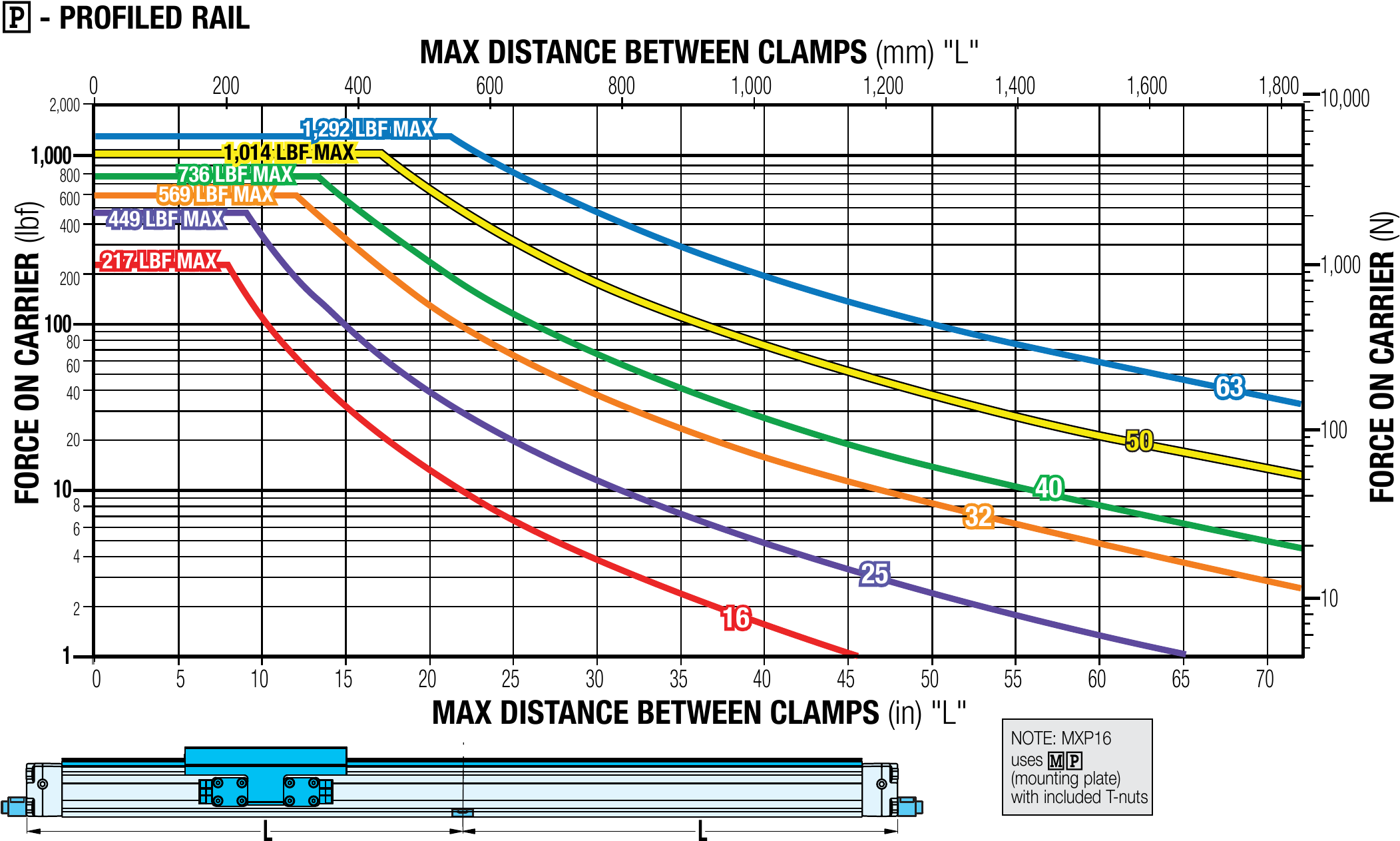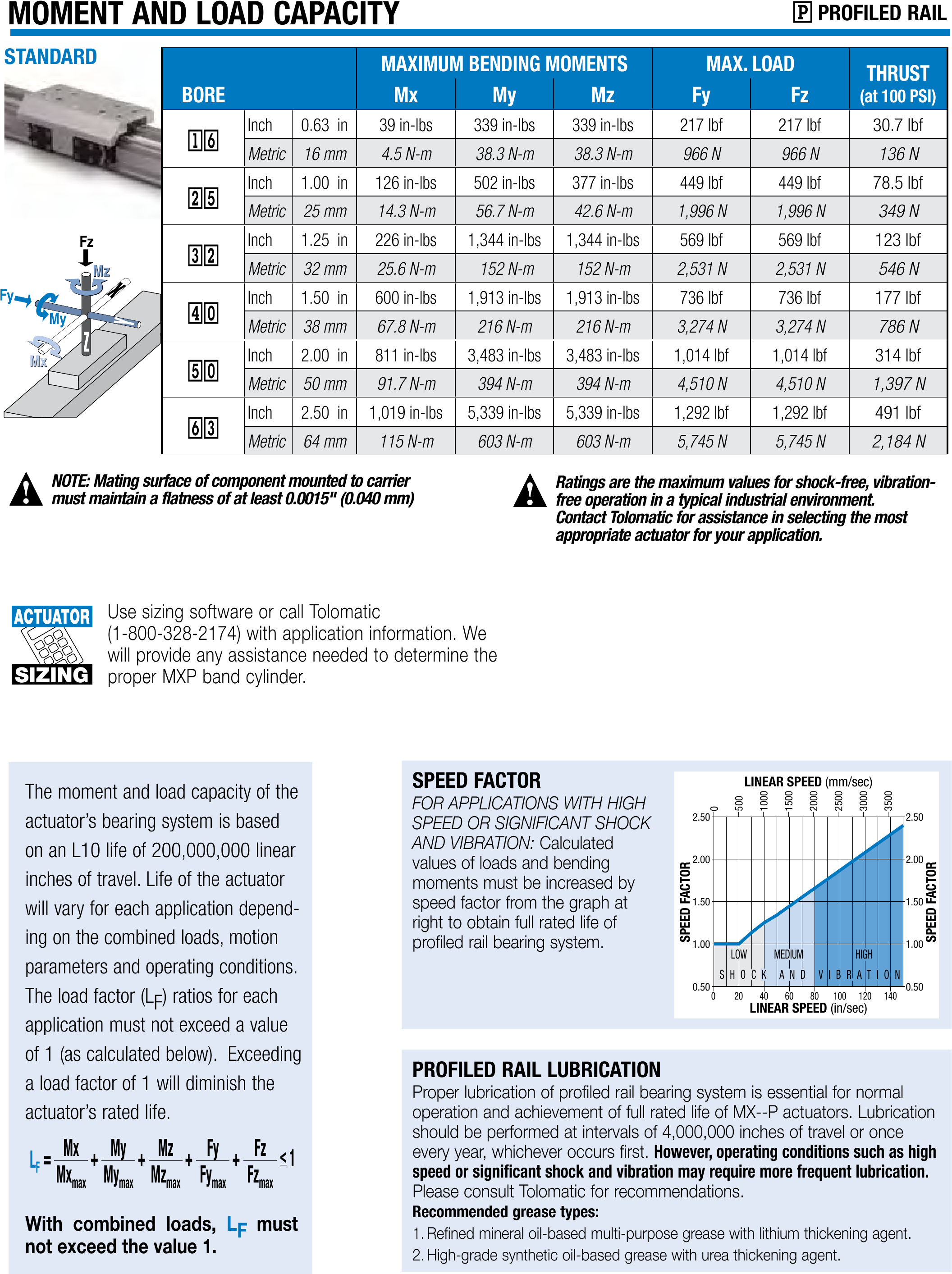The Tolomatic MXP-P profiled rail air actuators offer the highest load carrying capacity of the MXP actuator line (over 1200 lbf or 5745 N).