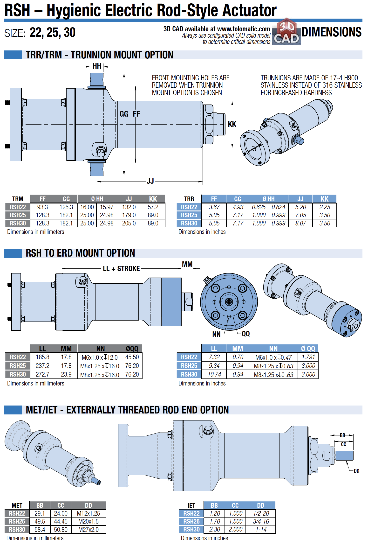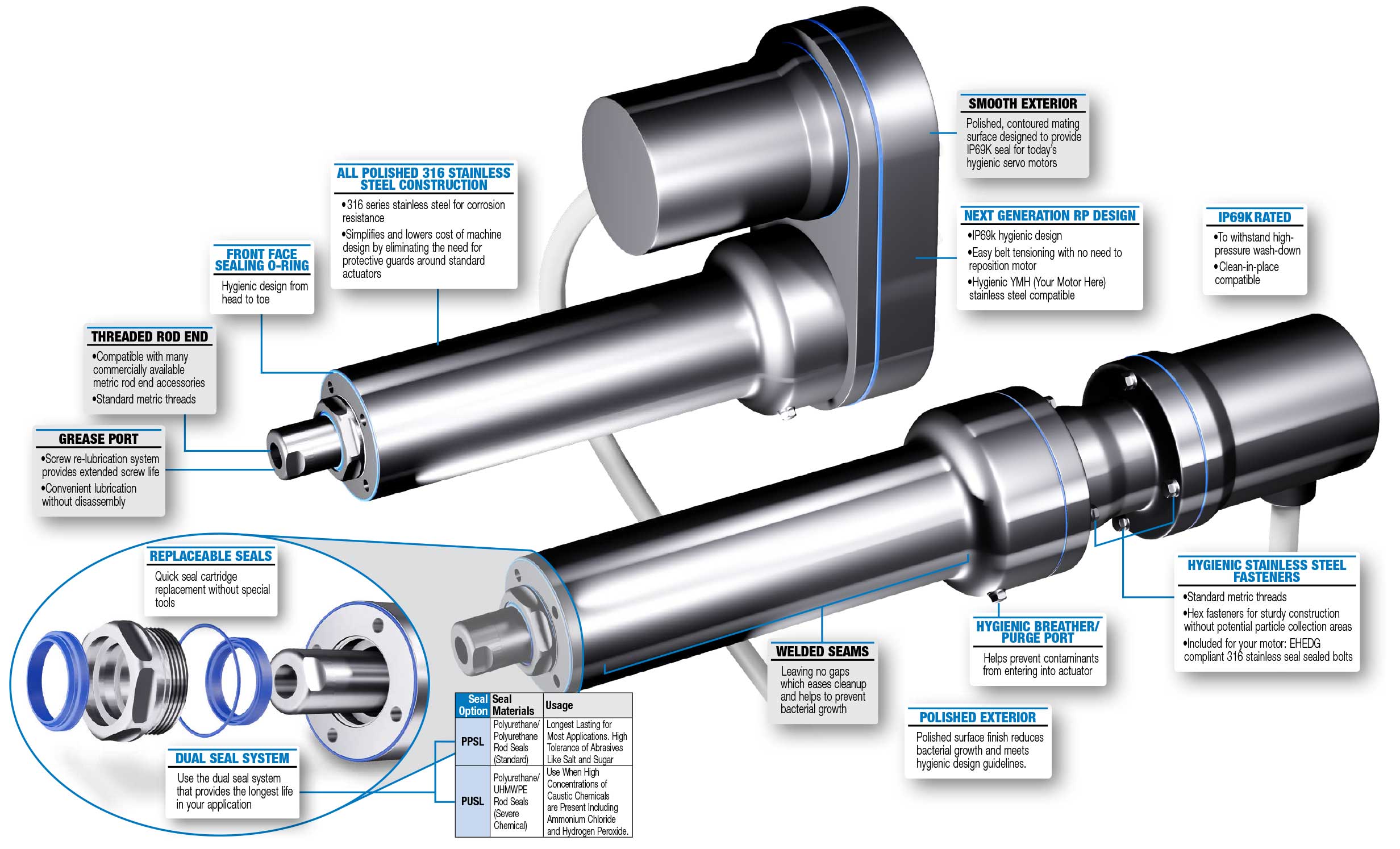 RSH hygienic electric actuators feature 316 stainless steel construction and IP69K