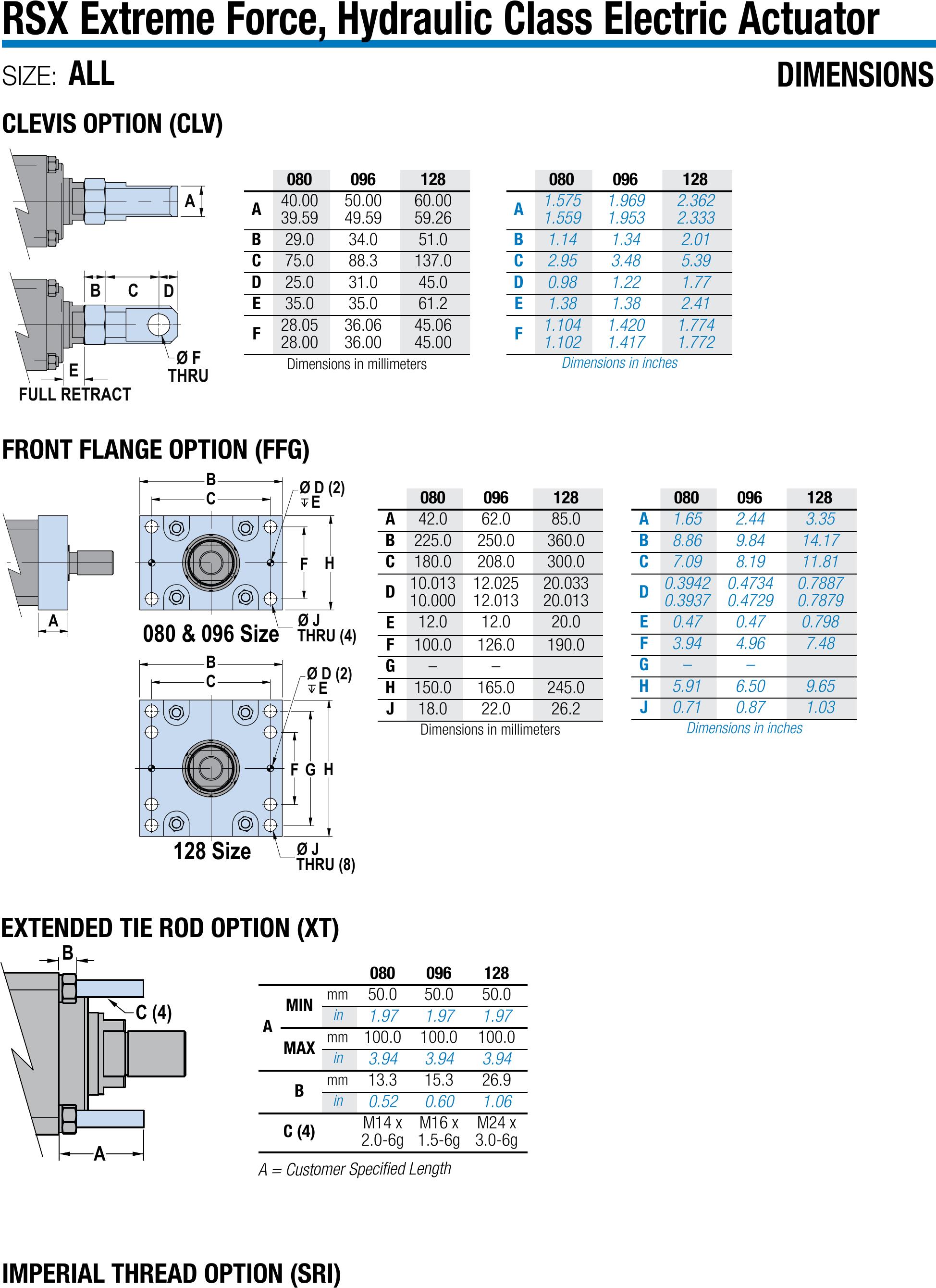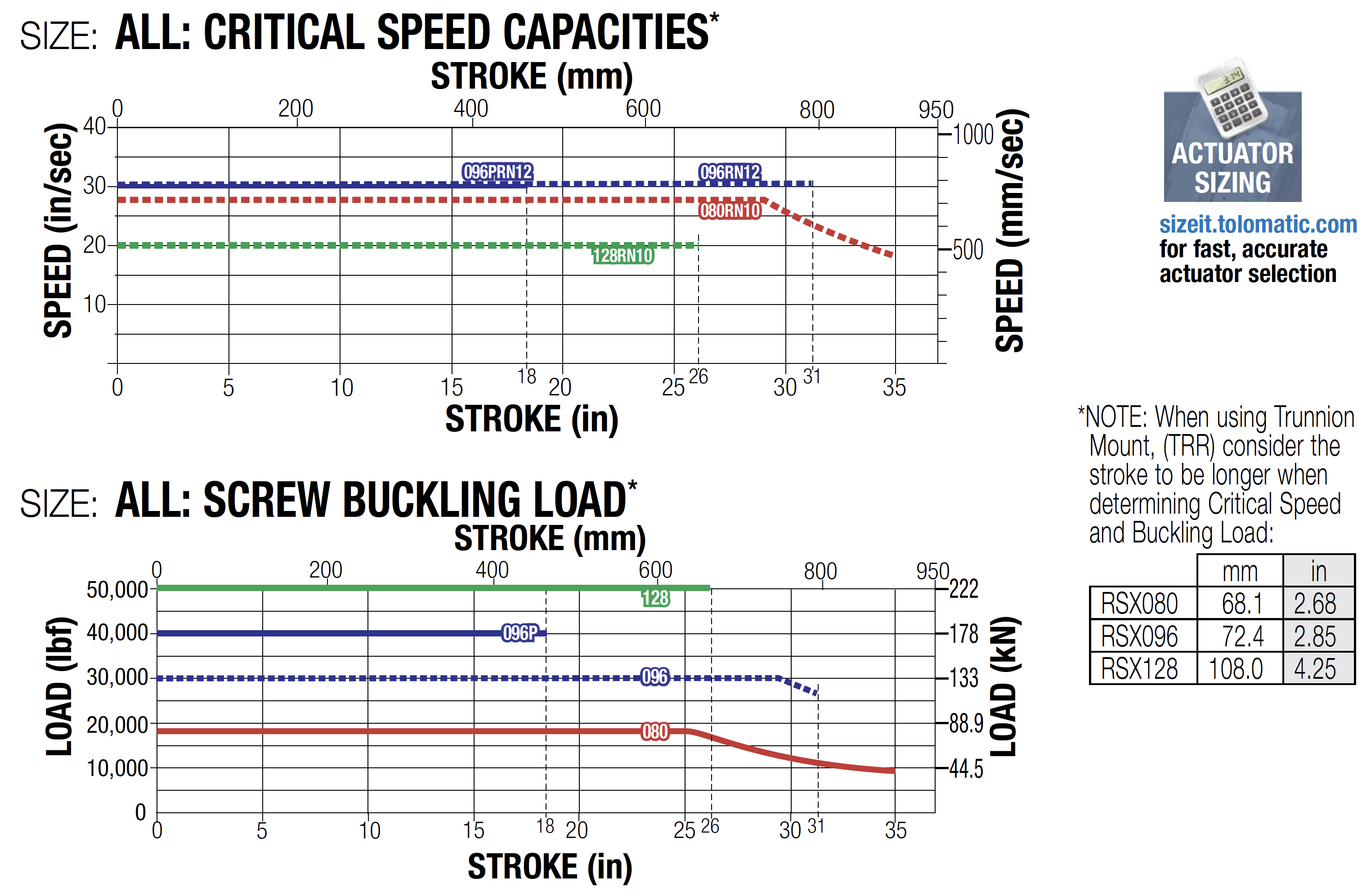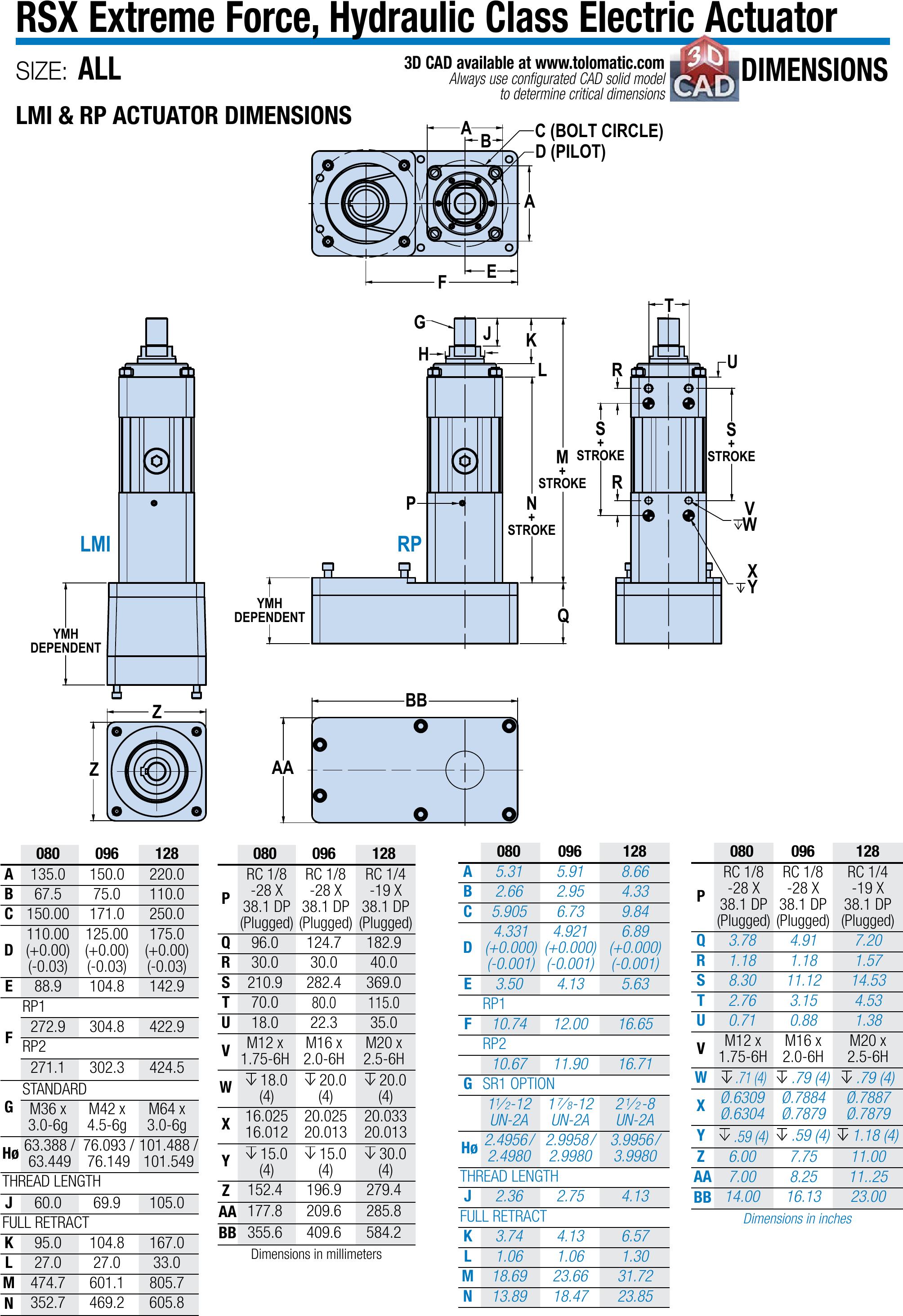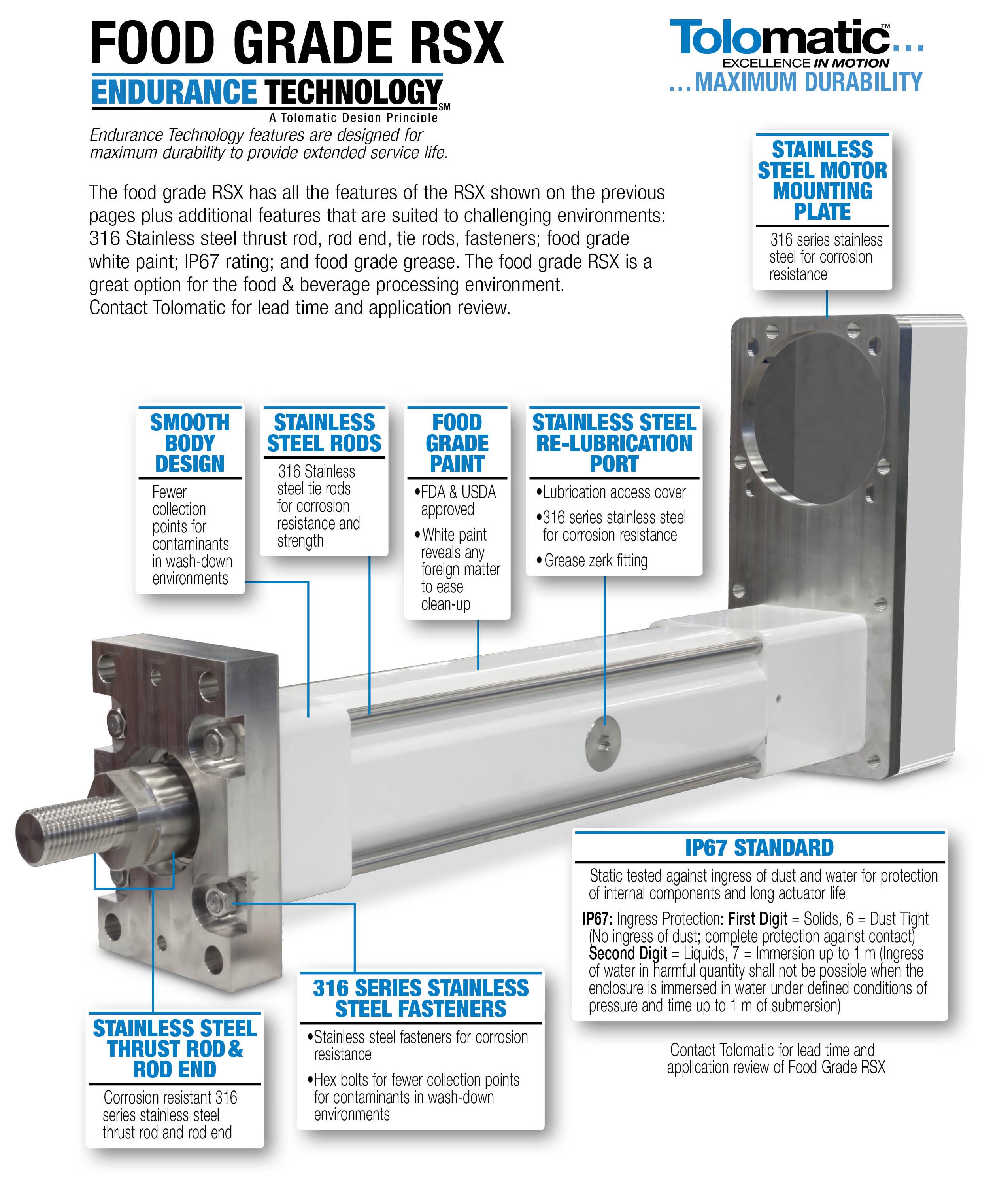 The RSX family of extreme force electric linear actuators are more efficient and offer increased precision compared to hydraulic cylinders. Tolomatic precision ground planetary roller screws are utilized to achieve long life and precision. The RSX platform is designed and tested for long life and reliable performance in demanding conditions including cold weather operation.