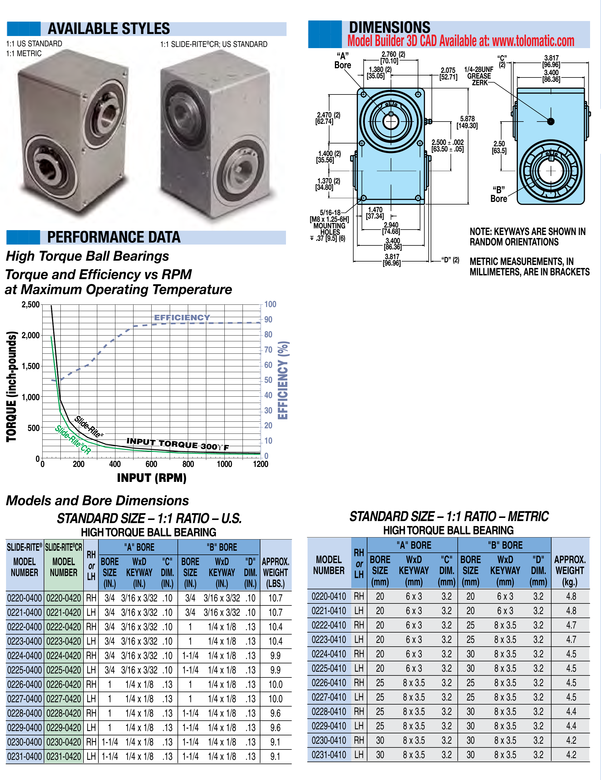0223-0400 Slide-Rite: Standard 1:1 (U.S. Customary) 10.4 lbsLH3/4"3/16" x 3/32".13"1"1/4" x 1/8".13"