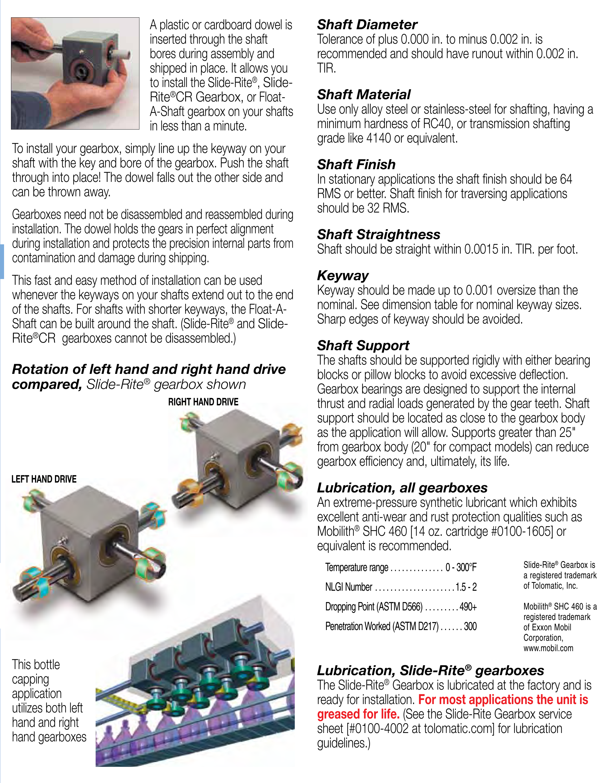 Tolomatic's standard size 1 to 1 Slide-Rite® right angle gearbox delivers up to 2480 in-lbs (280.2 Nm) of torque and offers the highest torque output of the Slide-Rite® series.